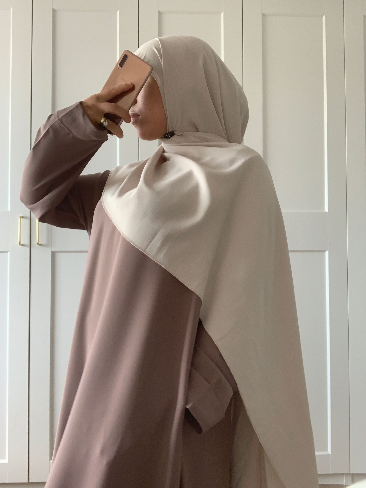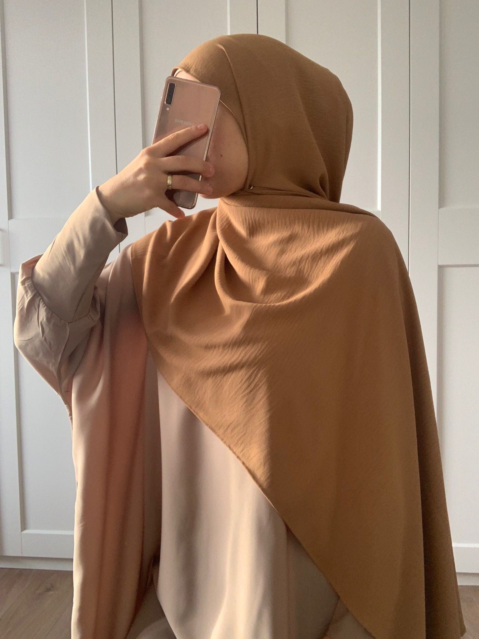 Nr: 2468- Hij Maße: 70x200cm Material: 100% Polyester Stoffart: Jazz Farbe: Camel Tip: Schal in Farbe Camel kombiniert mit Abaya Inaya in Beige (siehe Foto)