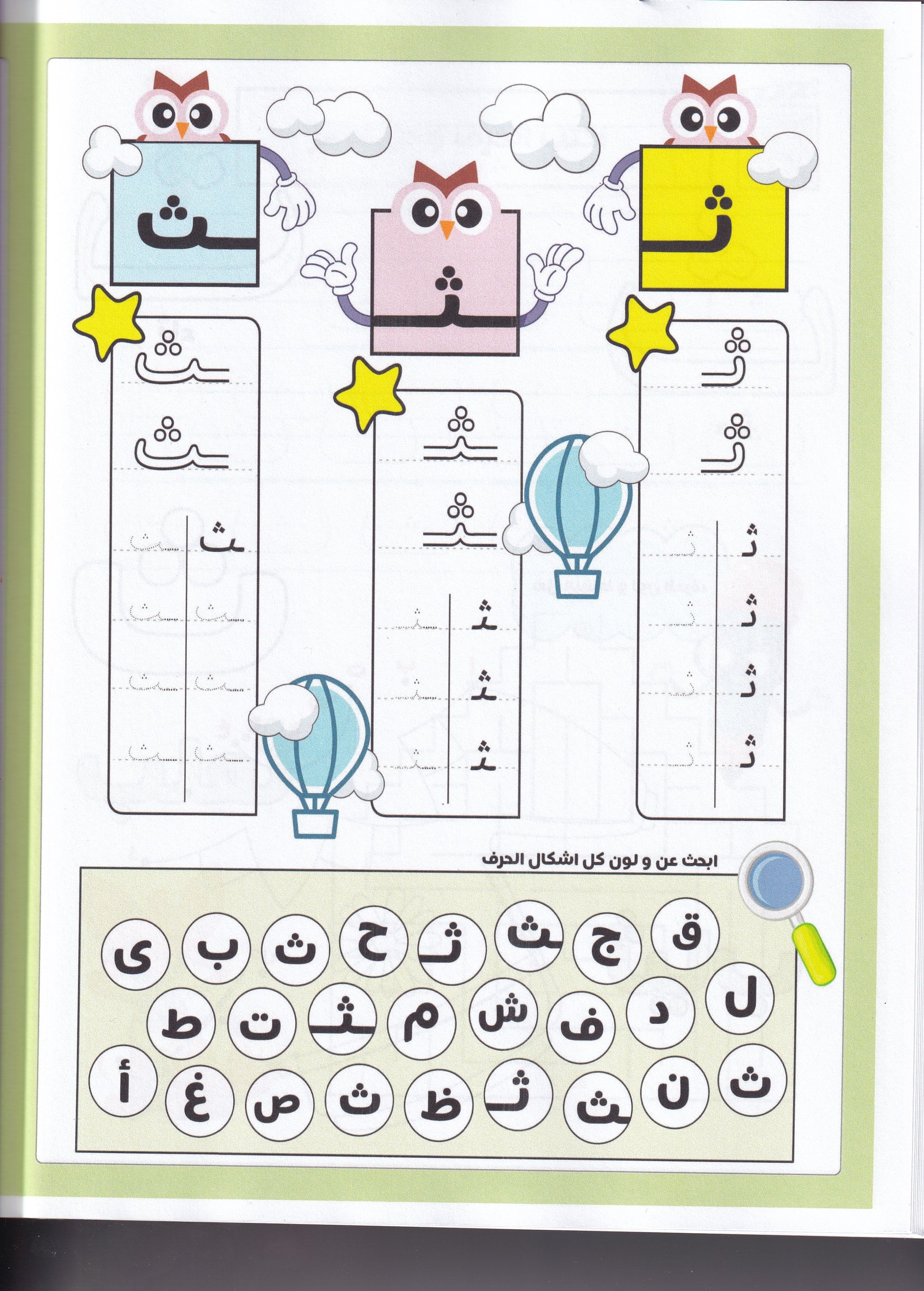 مساحة كافية للتدرب على كتابة الحروف والكلمات في الأسطر الفارغة وبالتالي التدرب على الكتابة